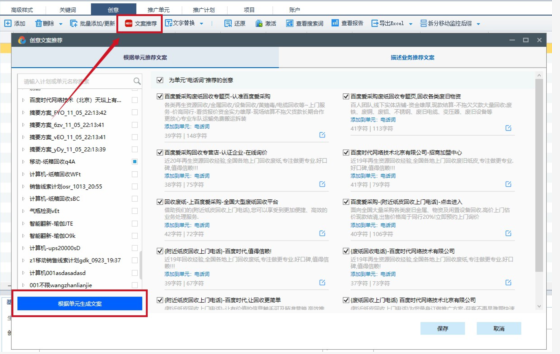 点击描述业务推荐文案,输入业务信息,点击“根据业务生成文案”按钮即可根据业务生成文案。若左侧勾选了单元,则生成的文案会默认保存在选中的单元下;未勾选单元生成的文案也可重新选择单元。